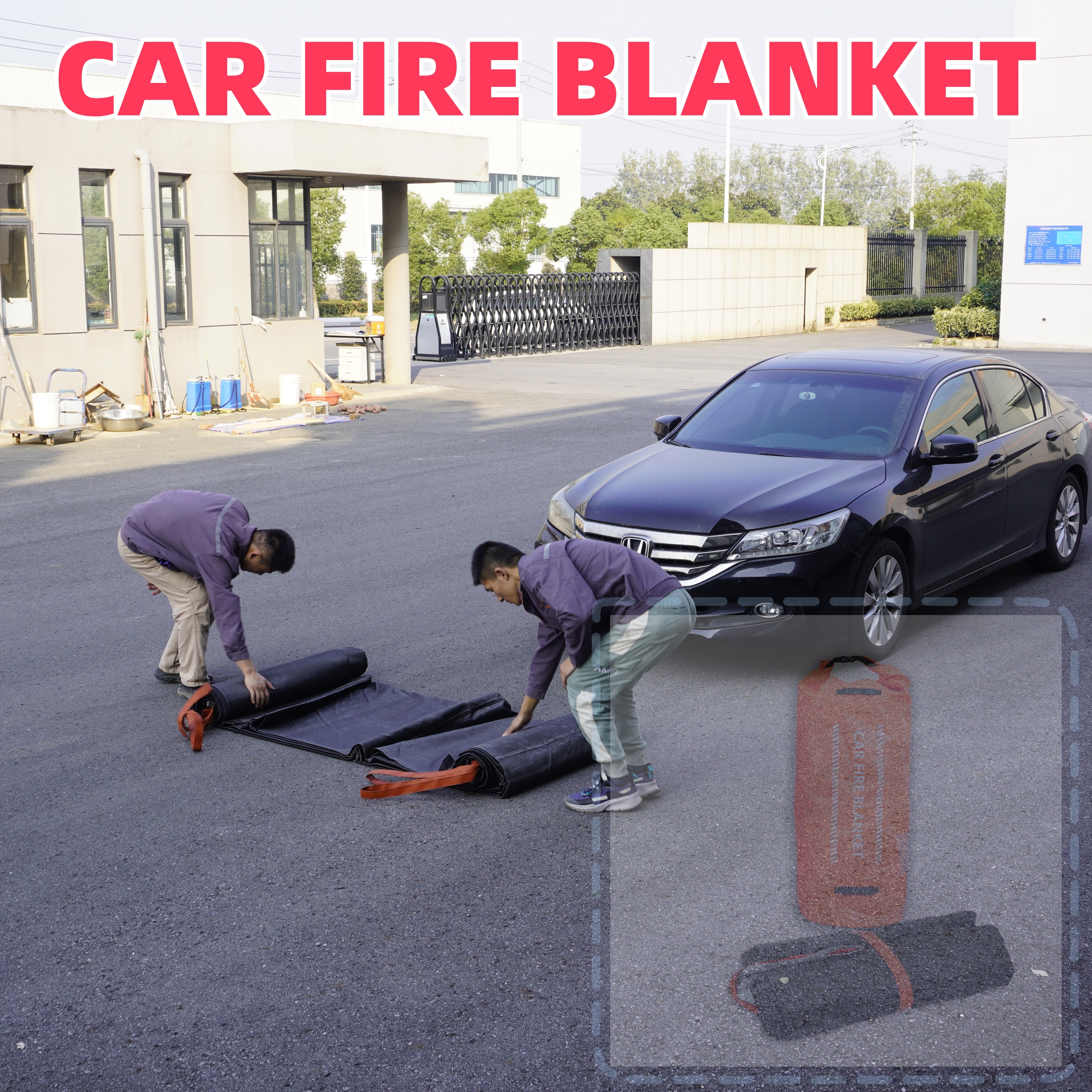 La coperta antincendio per auto da EV può essere distribuita facilmente da due persone ed è fornita in una comoda tenuta di stoccaggio per protezione e facilità di trasporto.