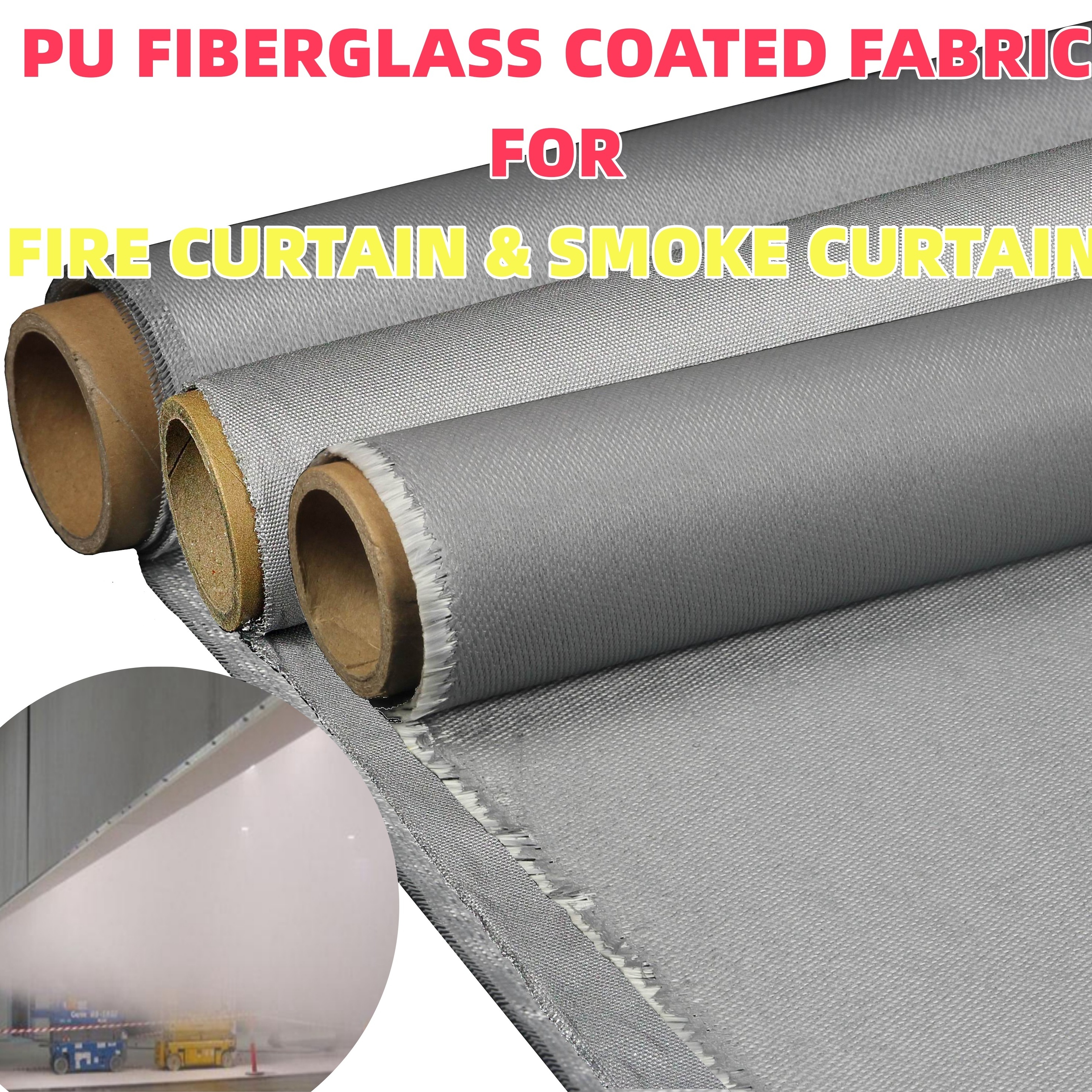 FABRICO rivestito di fibra di vetro PU per cortina antincendio e cortina antincendio 1