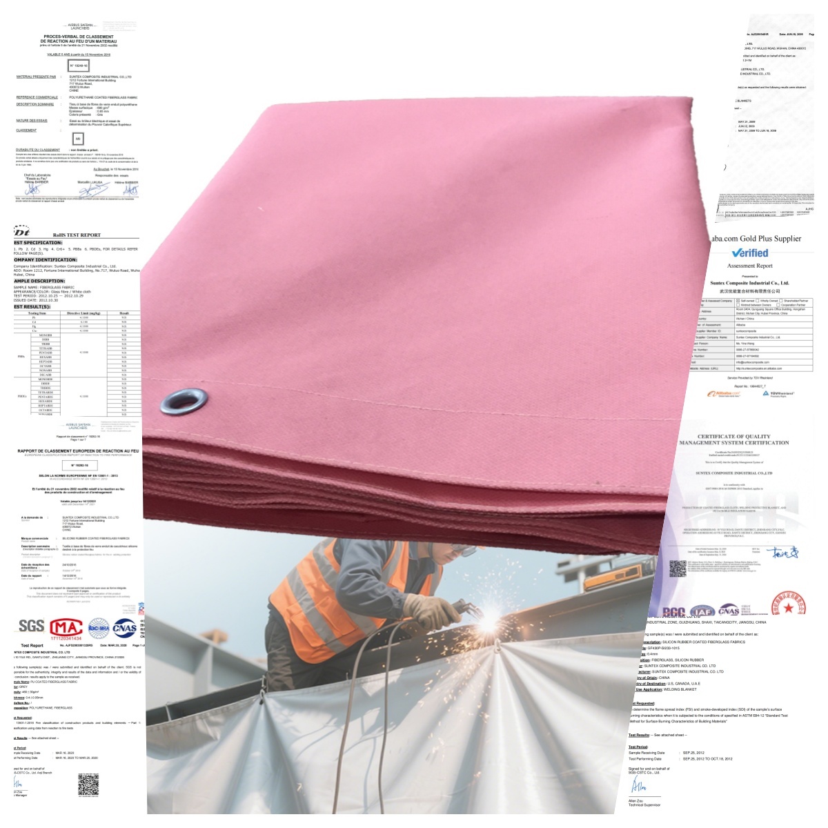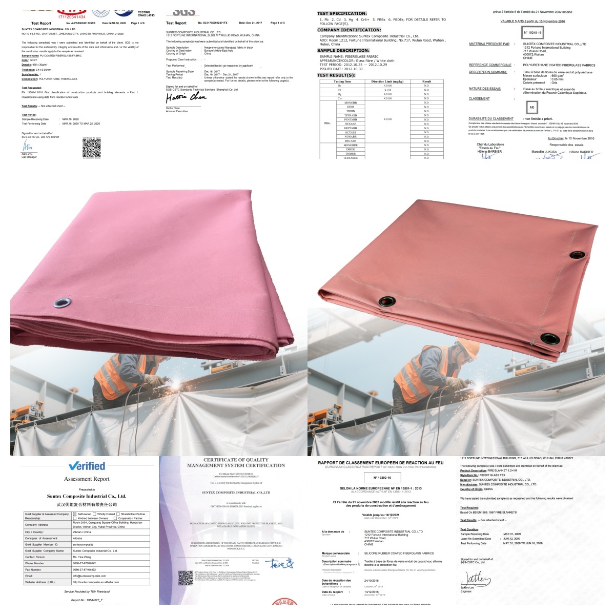 Le coperte antincendio di emergenza di sicurezza Suntex sono realizzate in tessuti tessuti in fibra di vetro di alta qualità, rivestiti su entrambi i lati e cuciti con Kevlar.completamente privo di amianto. utilizzato per incendi che coinvolgono liquidi infiammabili, un piccolo incendio in cucina. coperte antincendio Suntex sono conformi alla norma EN 1869-1997.