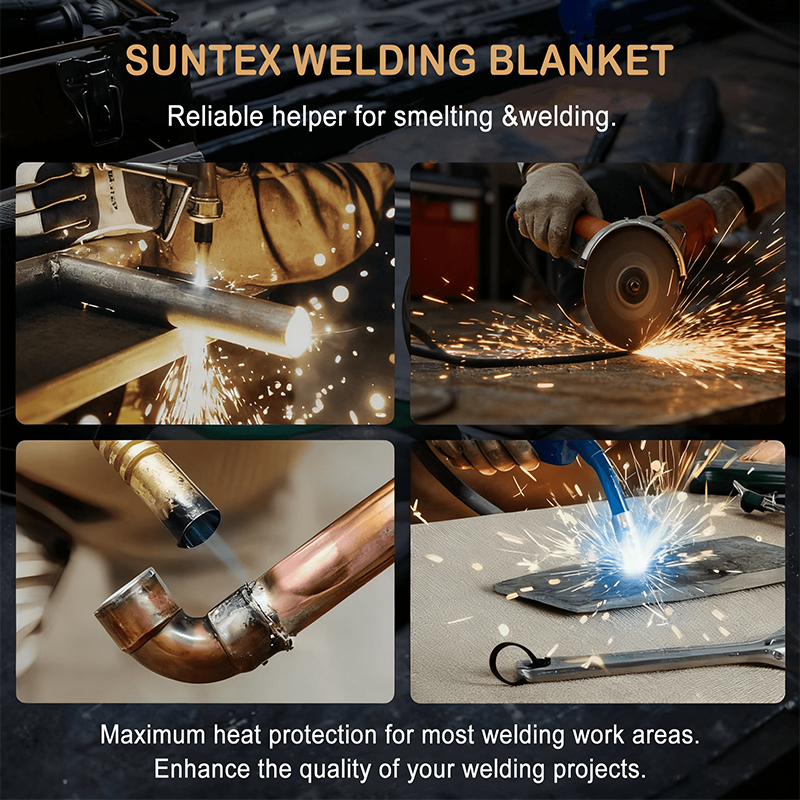 Le coperte antincendio Suntex Industrial sono realizzate con tessuti tessuti in fibra di vetro e sono in grado di resistere a temperature fino a 550°C. Completamente prive di amianto.Protezione da scintille e spruzzi di macinatura per l'industria, stazione di servizio, magazzino, cantiere.